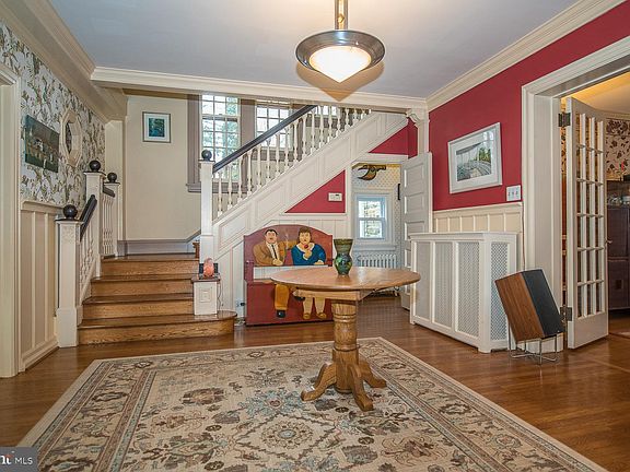 Return to a gracious period in this elegant stone 5 bedroom South Wayne charmer. Enter from the front porch into a large gathering room and appreciate exquisite millwork, stained glass, and wainscoating. This authenticity is carried throughout the home. The gas fireplace in the living room has the original stone mantle which is the focus of this room. The large bow window adds interest. The dining room has French doors that open to a stone porch for Summer entertaining. A fanciful window seat adds a special touch. The gourmet kitchen with a granite breakfast bar is fully equipped including a Jenn air stove and a bar refrigerator. The mud room and first floor laundry open to a cedar deck and a gardener's delight of one plus acre lot. Three large bedrooms comprise the second floor. The master has its own bath with tub and shower. The other two bedrooms have bookcases, and one includes French doors and a Julliet Balcony. A large hall bath serves the two bedrooms. The third floor has two large dormer bedrooms, access to finished attic. All bedrooms equipped with ceiling fans. The detached two car garage has a bonus finished 4 room modern apartment suitable for guests or the possibility of a rental. South Wayne is a special town with a special warmth. It is close to major roads and the airport. Schools are award winning. This home is ready for the next lucky buyer. 2020-04-16