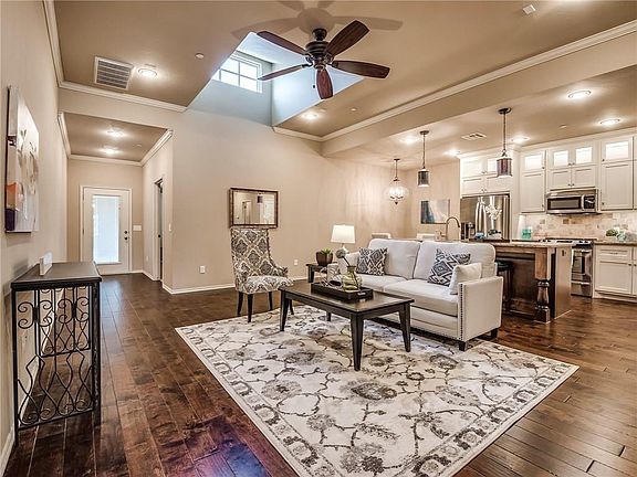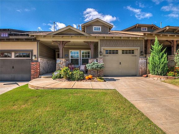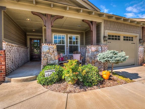 Exceptional elegance meets easy living! Charming cottage like townhouse in the active community of the Porches at Arbor Creek. The covered front patio offers a great sitting area to greet neighbors and leads inside to a well thought open floor plan with many designer touches. Stunning wood floors, natural light and wood floors throughout. Spacious kitchen with granite countertops, breakfast bar and plenty of storage. The en suite master offers double vanities and a walk-in closet. A second bedroom and bath is perfect for guests. Enjoy your own private backyard free of the worries of lawn care. HOA includes yard maintenance and exterior work, common area maintenance, a clubhouse with fitness rooms and a kitchen, and gated entry. Each energy efficient home includes their own garage and covered patio. Holiday parties, social hours, amenities and location are just a few reasons residents enjoy living here! Just off of I-35 and near many dining and shops, you will feel right at home!