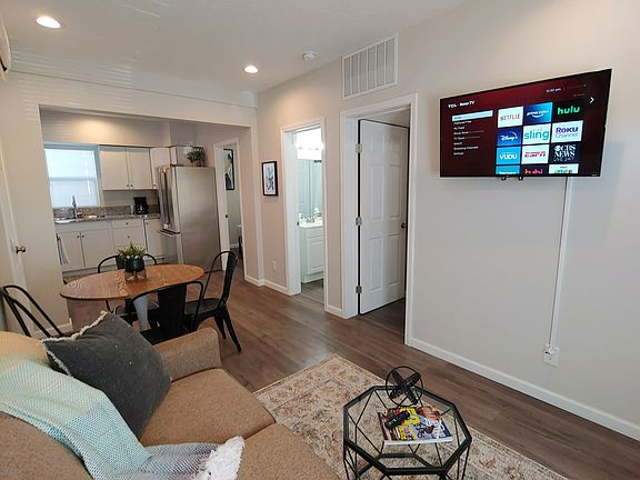 Fully remodeled, this beautiful unit offers an open floor plan, 2 bedroom 1 bath in the heart of downtown Albuquerque. Just down the street from some great restaurants, coffee shops, art galleries, and everything Barelas has to offer, and only a 5 minute bike ride to Albuquerque's amazing river-side bike and talking trails and a wide range of coffee shops, bars, and restaurants within walking distance. 1 off street parking space, and free shared washer/dryer. Rent is $1295 plus electric for a one year lease. Willing to remove furniture if needed, or negotiate the furnishings to be yours with a longer lease. Owner pays for water/gas/trash pickup. Tenant is responsible for electrical utilities. 12 month minimum lease period. Complementary wifi provided.