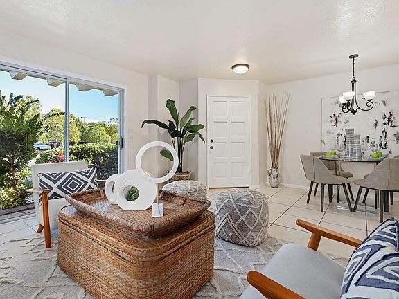 This rarely available ground floor Pacific Palms unit has just been freshly painted along with some updating. New refrigerator, water heater, bath sinks, vanity, toilet, & fixtures, light fixtures, screens and bedroom flooring. Very spacious & private back patio with storage and access to the two assigned parking spaces. This complex offers a resort like pool, spa, lawn and party area. You are super close to the Camino Real Marketplace, the ocean, UCSB, Ellwood Preserve trails, Devereux Pt surfing and more! Great for 1st time buyers or parents buying for their student.