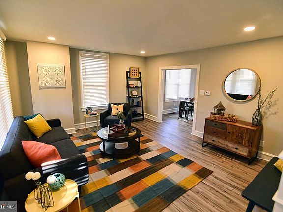 Welcome home to this lovely remodeled 2 Bed/1 bath home in Riverton! From the moment you are greeted by the open front porch and blue Craftsman style front door you will fall in love with this tastefully remodeled home. Entering into the living room, you will find recessed lighting, new variegated hardwood flooring that runs throughout the 1st floor, and fresh, neutral paint that runs throughout the house. Two large front-facing windows let in lots of light. Off of the living room is the eat-in kitchen. The kitchen features new stainless steel appliances, Quartz counter tops with an overhang for extra seating, new cabinets, recessed and pendant lighting, and lots of windows. Both the rear yard and basement can be accessed from the kitchen. On the second floor are two bedrooms and a full bath, as well as neutral carpeting. The bath offers a fully tiled tub/shower combo with accent tile strip, hexagonal floor tiling, hexagonal tiled backsplash, and vessel sink with quartz vanity counter top. There is plenty of storage in the full basement which has a new sump pump and dehumidifier as well as convenient inside access from the kitchen. In addition, this home offers a new roof, new HVAC and ductwork, new hot water heater, new 150 amp electrical service and rewire, and new plumbing. Located near to the Tacony-Palmyra Bridge, Routes 73 and 130, commuting will be a breeze. This charming home won~t last long so come see it today!