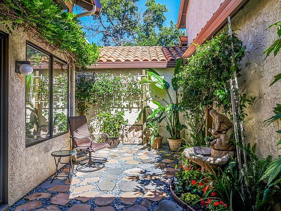 Modern and updated, offering a rare floor plan, the most coveted layout including an attached two-car garage. There are a limited few of these villa-style townhomes that are centered around a European interior courtyard, with natural rock patio and lush greenery. New lighting throughout, updated flooring and newly remodeled kitchen with brand new shaker cabinets, quartz countertops with subway backsplash, induction cooktop with vented hood, and stainless steel appliances. Elegant, serene, and light-filled, the entry pleases with soaring ceilings above the open concept living room and connected dining room creating the perfect space for entertaining. This coveted floor plan boasts a large downstairs master bedroom with vaulted ceiling with garden access, additionally the master bath was doubled in size and is truly unique and modern. Moving upstairs, you'll be delighted by two spacious bedrooms with ceiling lights and a full updated bath. Completely energy efficient, must see!