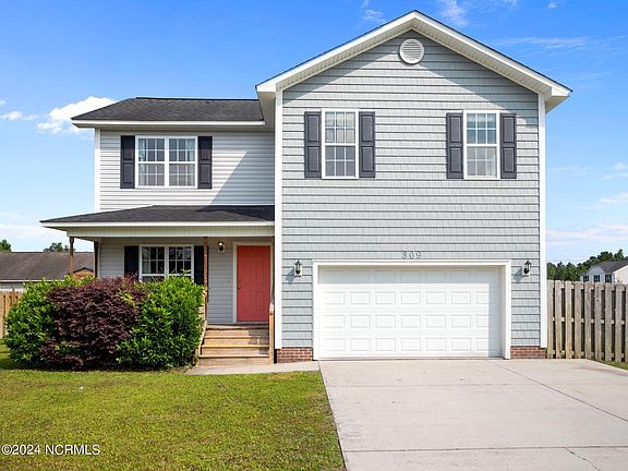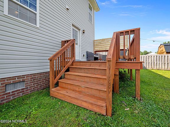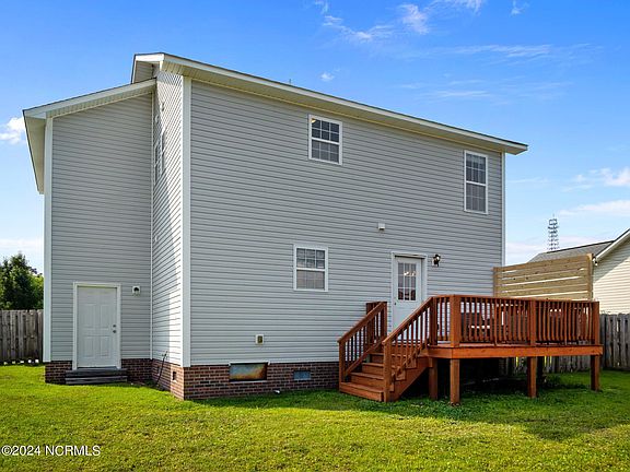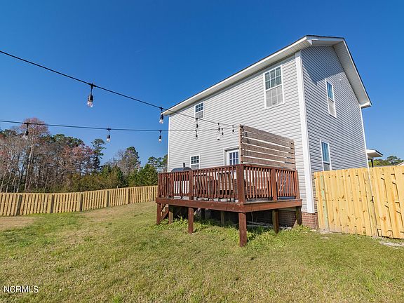 This charming two-story home offers 3 bedrooms and 2.5 baths with NO HOA! Ideally situated in close proximity to the pristine beaches of Surf City and Topsail Island, as well as a quick commute to the military base in Jacksonville or MARSOC. Step inside to discover a thoughtfully designed first level leading into the kitchen, adorned with stainless steel appliances, and plenty of cabinet space! On the second floor, retreat to the spacious primary bedroom, complete with vaulted ceilings and ample closet space, to unwind. Down the hall you'll find 2 more bedrooms, and the second full bathroom,, along with the added convenience of a laundry room - washer and dryer included. Outside, you'll be able to relax by the fire or entertain on the deck in style. Whether you're hosting gatherings with loved ones or simply enjoying a peaceful evening under the stars, this NEW fully fenced [Installed March 2024] backyard space is sure to be your new favorite retreat! **Furnishings are negotiable**