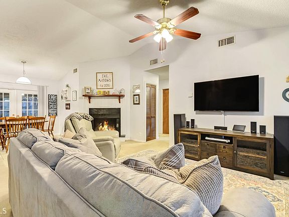 Simply Sweet! This home is ready for its new owners! Gray paint tones throughout home! Whitewashed wood burning fireplace. Bay windows in Living Room with vaulted ceilings provides natural light! Split floor plan with walk-in closets in 2 of the bedrooms. Dining Room and breakfast nook! Across the street from the housing gate of Kings Bay base! HVAC is 2 years old! Home is convenient to I95 for easy commute to Jacksonville or Brunswick! Screened porch overlooks fenced, private backyard! Backs up to woods!