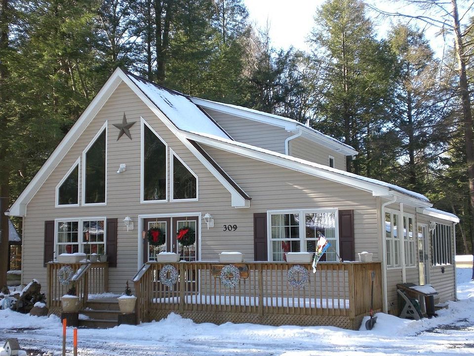 Upgraded & expanded chalet! Features include floor to ceiling stone fireplace with gas log insert in the great room, top of the line Anderson windows thru out & architectural shingles. Kitchen has cherry cabinets and wide counter top so guests can sit & talk will you prepare the meal. Don't miss a formal dining room with room for entertaining your family & friends. A place to enjoy mother nature in the lovely Year Round Sun Room with propane fireplace & vaulted ceiling. Master suite has a walk-in closet & private bath with real jacuzzi tub. Owners spared no cost with their upgrades, now you can be the proud owner of this beautiful chalet. Detached 1 car garage & shed are just more of the bonuses you will find here. ATV's are permitted.For the avid hunters there is game land & a gun range.