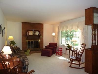 3rd bedroom now a den, can be turned back into bedroom. Updated kitchen & baths, hardwood under carpet, nice trees and landscape, replacement windows.