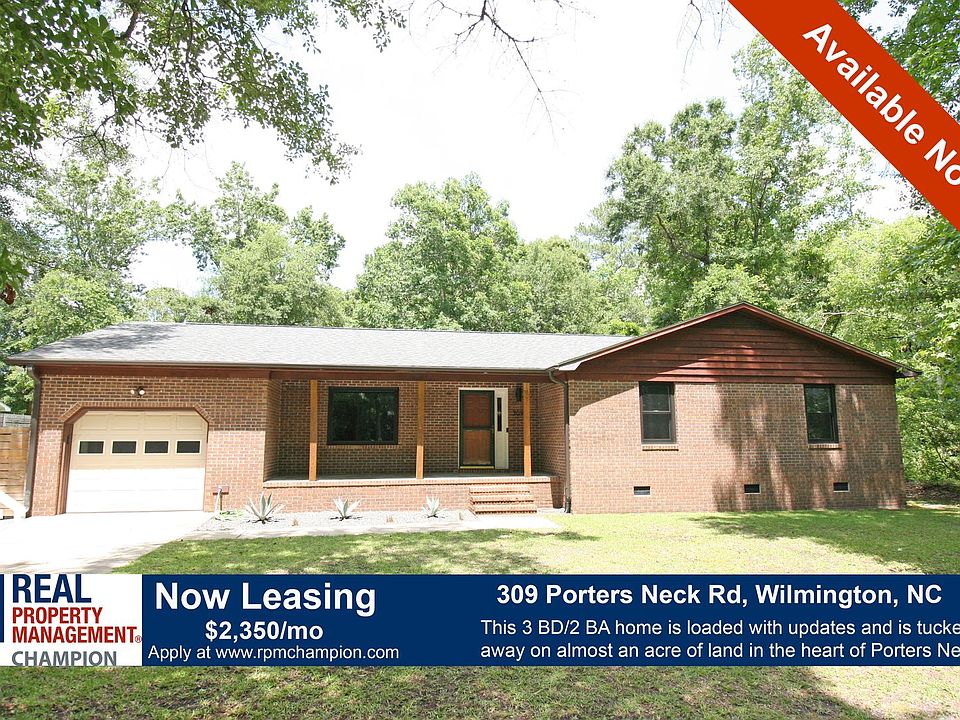 This fabulous 3 BD/2 BA home is loaded with updates and is tucked away on almost an acre of land in the heart of Porters Neck, where you'll have easy access to shopping, dining, and the interstate! You will be greeted by a rocking chair front porch, then as you enter the living room that features a decorative fireplace and beautiful wood flooring that flows seamlessly throughout the house. The formal dining room has a large picture window overlooking the front yard. The kitchen offers a **reverse osmosis system** and a well-planned space for cooking with ample cabinets and counter space and a bayed window breakfast nook with upgraded light fixture. The laundry room is adjacent to the kitchen and includes a washer and dryer for your convenience. The master bedroom has two closets and a fully updated private bath with tile flooring, modern vanity and step-in tile shower. The two guest bedrooms are generous in size and include upgraded ceiling fans and custom shelving in the closets. The second full bath is near the bedrooms and has been renovated with tile flooring, double sink vanity and tub/shower combination with tile surround to the ceiling. The outdoor living space is amazing with its covered porch surrounded by a spacious deck, detached workshop, additional shed, covered RV/boat storage, attached one car garage, and *partially* fenced yard. There's also a well and septic tank on site, so you can enjoy no monthly water bills! *tenants will only cover cost of salt for water softener and filters for osmosis system* We are an Equal Housing Opportunity Management Company and abide by the term of the Federal Fair Housing Act. Pets are allowed with prior approval and required pet fees. Aggressive breed list may apply. Contact listing agent prior to submitting application. No Smoking, e-cigarettes or vaping. All applicants over 18 years of age are subject to a background check, including criminal, credit, employment verification, and past tenancy.