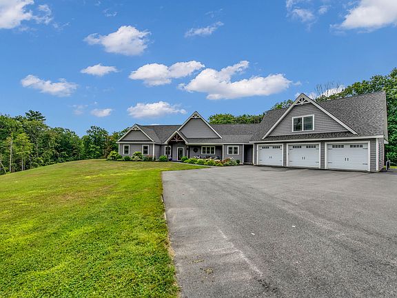 Elegant and Energy Efficient Home. Welcome to this elegant, energy-efficient home built with concrete for superior energy efficiency, ensuring year-round comfort and sustainability. Designed with luxury and practicality in mind, this stunning property offers a blend of comfort, style, functionality and low maintenance. As you enter the winding driveway, you will immediately notice the stunning landscape which includes your very own pond, creating a serene and picturesque environment. With easy one-level living, you will also enjoy a large finished bonus room over the attached 3-car garage perfect for additional living space or a versatile area for various needs. The primary en-suite is bright and spacious with 9' ceilings, walk-in closet, a beautiful tiled, walk-in shower, and double sinks vanity with leathered granite countertops. In addition to the primary suite, the home includes 5 spacious bedrooms and 2 additional full bathrooms, each with double sinks and granite vanities, providing ample comfort and luxury. The chef's dream kitchen features stainless steel appliances, a gas stove, and an open layout that seamlessly connects to the living and dining areas, creating an ideal space for entertaining and family gatherings. Comfort and efficiency to its highest quality, you will stay comfortable all year long with radiant floor heating and central air. The backyard showcases an outdoor oasis where you will enjoy the expansive patio area, a heated, in-ground saltwater pool, a convenient pool shed, and dedicated BBQ and firepit areas, perfect for outdoor entertaining. In addition, there are two, newly built, 60x40 garages with their own private well and heat pumps to keep you warm or cool. This is the perfect opportunity for your professional needs, ample space for storage, or hobbies. This stunning property offers an abundance of features that cater to a comfortable and sophisticated lifestyle. Do not miss this extraordinary property!