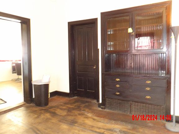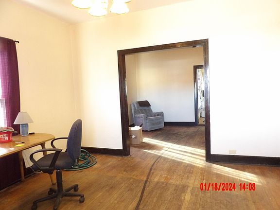 Calling Investors, good rental near College. Close to Park, Restaurants, down town - all walking distance. This two bedroom with a Jack and Jill bath is in a great location. No Stairs, all hard wood floors in Livingroom Dining room, bedrooms, kitchen has vinyl. The wood floors could use a new sanding and treatment.Eat-in Kitchen, back porch is enclosed and serves as good mudroom/ storage. Dining room has built-in hutch with glass doors in great shape. Fenced yard