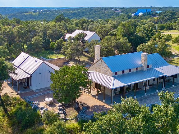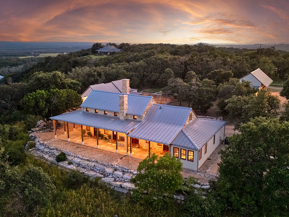 With the best views in eastern Gillespie county, 309 Ridgeview Drive is very favorably located in the popular Texas Hill Country wine region (photos DO NOT portray the experience of seeing this captivating vista in person.) The three-bedroom Tony Martin designed/built compound features a finely appointed main home & adjacent two-bedroom guest house, along with an oversized three-car garage/studio. The three-bedroom Tony Martin designed/built compound features a finely appointed main home & adjacent two-bedroom guest house (combined 2,451 square feet), along with an oversized three-car garage/studio (783 square feet)., cooking aficionado's kitchen, wood-burning fireplaces, sizable office (with a view), cozy media/craft room, cedar potting shed, and an all-steel storm shelter. Expansive shaded porches provide abundant, ready-made outdoor leisure spaces. The premium location is halfway between Fredericksburg and Johnson City, about 20 minutes from each. Burgeoning Hye, Stonewall, and the Wine Road 290 wineries lie in close proximity. Austin and San Antonio are each just over a one hour drive away.
