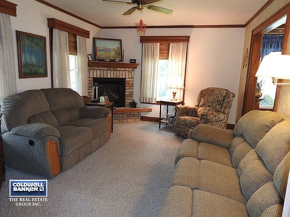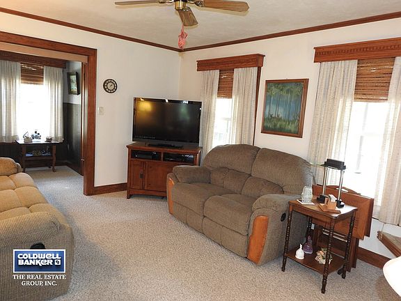 Great 4 bedroom home full of updates! Newer steel siding, shingles, gutters, electrical, water heater & April air. Also updated are the kitchen & fireplace. Features beautiful woodwork throughout the home, hardwood floors, 1.2 bath on main floor & basement, gas fireplace, formal dining room, spacious kitchen with beautiful cabinets, all appliances, welcoming front porch & foyer area, open staircase, extra parking slab, sprinkler system and more. Move right in!