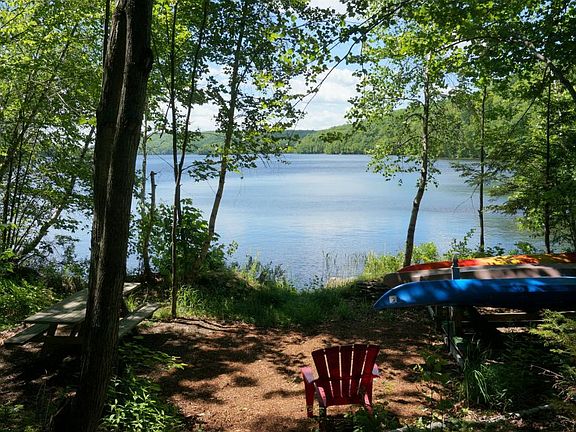 Waterfront at Eastman. Lakeside living at its best in this sunny, beautifully maintained home with year round lake views from all rooms. Easy access to the lake down a gently sloping path from landscaped backyard. Step-in, open access to the water with boat storage and seating area at the water's edge. Large deck, stone patio and enclosed porch all overlooking the lake. Recent, extensive renovation including split ductless air conditioning system. Gourmet granite and stainless steel kitchen with ultimate, top-of-the-line appliances. Numerous amenities including: stand-by generator, automatic freeze, flood and fire protection, central vacuum, electronically controlled exterior lighting, warming oven, professionally landscaped terraced garden and lawn.