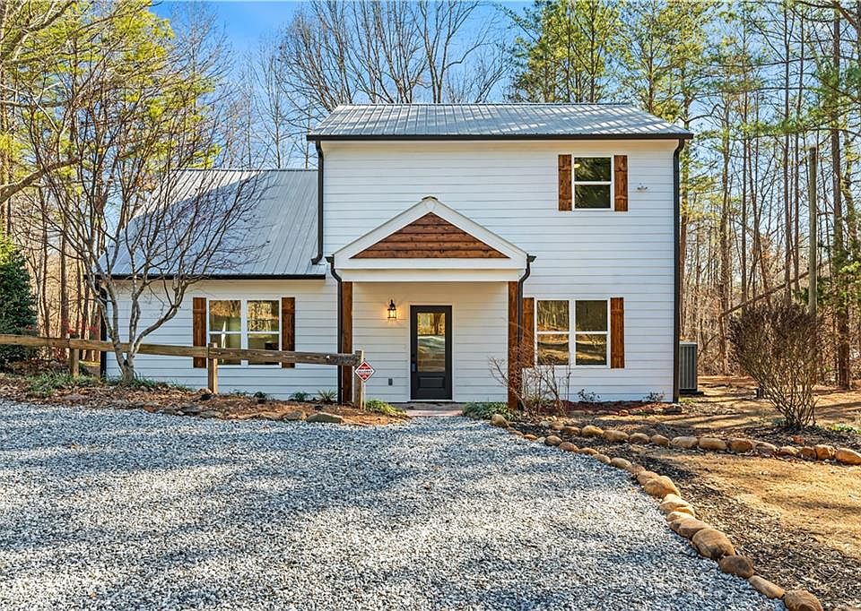 Welcome to your charming farmhouse retreat nestled on a serene 1.5-acre wooded lot with a tranquil creek meandering at the back of the property. This picturesque haven offers the perfect blend of modern luxury and rustic charm. This is a fully remodeled home. Property is conveniently located near Cherokee and Forsyth counties. NO HOA! Step inside to discover a thoughtfully designed interior boasting 3 bedrooms and 2 baths. The second floor laundry adds convenience to your daily routine, while luxury vinyl plank floors flow seamlessly throughout the home, offering both durability and style. This home is fully foam insulated for Energy Efficiency. Prepare gourmet meals in the heart of the home, where Quartz countertops with waterfall edge, gleams against brand new white shaker cabinets. A walk-in pantry provides ample storage space, while the adjacent covered deck invites al fresco dining and relaxation. Gather around the fire pit outside for cozy evenings under the stars. This home is equipped with the latest amenities for your comfort and peace of mind, including a brand new HVAC system, a range with oven and air fryer, and a dishwasher—all ready to elevate your culinary adventures. A metal roof ensures durability and longevity, while a security system with cameras offers added security. Indulge in self-care in the luxurious bathrooms featuring double vanity cabinets, a soaking tub, and a walk-in shower. Retreat to spacious bedrooms with walk-in closets, providing plenty of storage for your wardrobe and belongings. With its idyllic setting, modern amenities, and timeless farmhouse style, this home offers the perfect retreat for those seeking tranquility and comfort amidst nature's beauty. Don't miss your chance to make this dreamy farmhouse yours! Space for garage to be built on property. Schedule a showing today.