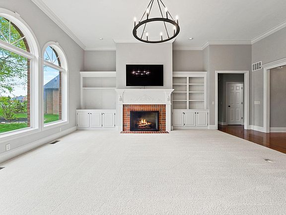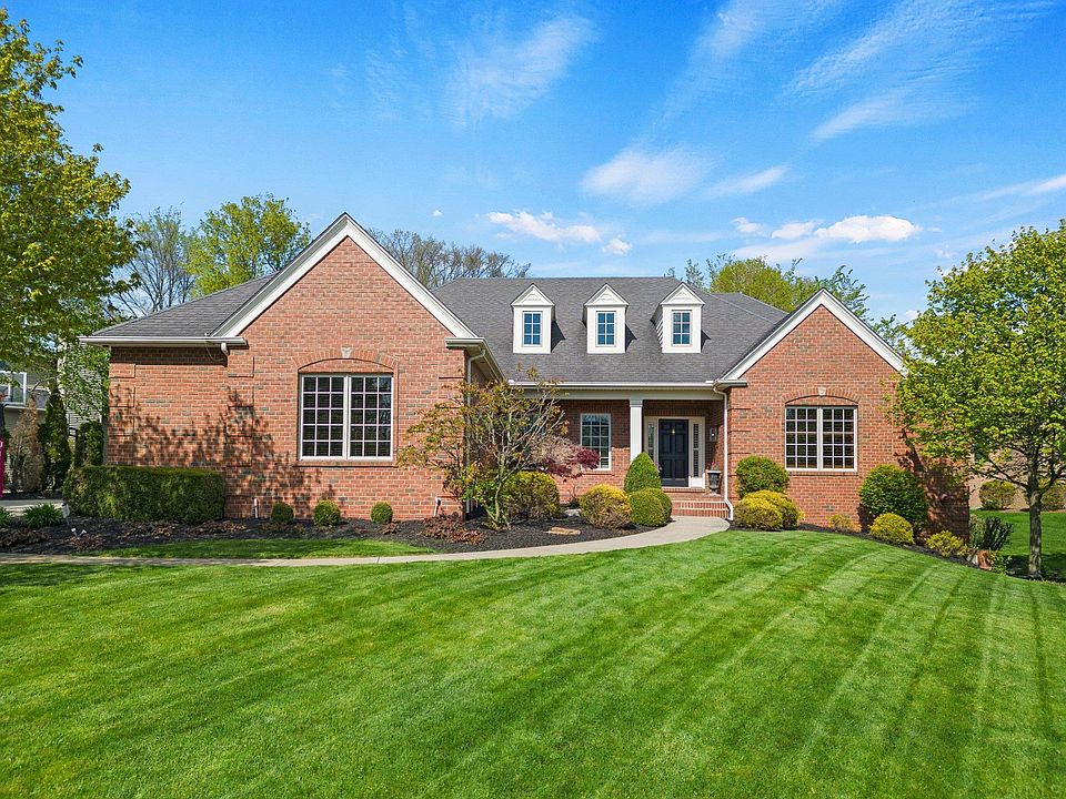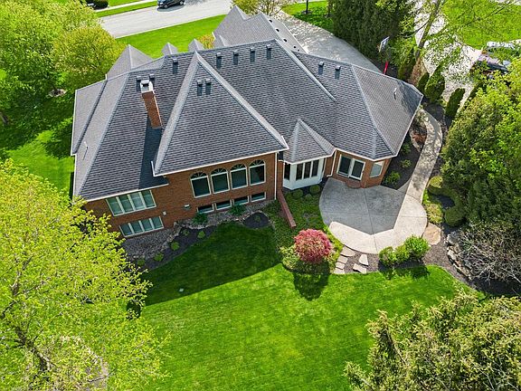 This Masterpiece Custom built ranch is beautifully maintained. Stunning all brick exterior located on one of the most desirable cul-de-sacs in Chestnut Hills. Exceptionally crafted home with soaring ceilings and over 5,300 sq ft of living space on a 1/2 acre lot. Natural light galore as the whole back of house is windows, complete with a beautiful daylight basement. Spacious gourmet kitchen with ample granite countertops and Harlan cabinetry. The first floor primary suite bathroom features a walk-in shower and his/hers closets. The home office is worthy of work from home; sizeable with plenty of shelving/cabinet space and doors that close for privacy. Updated lower level features stone fireplace and custom bar/ kitchenette with Viking appliances. Abundant storage with built in garage cabinets, large lower level 22x11 storage room, and cedar-lined closet. Replacement cycle? Not here, new furnace and A/C units installed Oct 2022, 75-gallon hot water heater in 2019, newer ejector pump and fully serviced water softener. Enjoy the privacy of a yard that backs up to a wooded common area with a pond view. This beautifully landscaped lot features mature trees. Wonderful neighborhood amenities including golf, tennis and large swimming pool. Easy access to shopping & I-69 in desirable SACS school district. Come see this home today, it won't last long!
