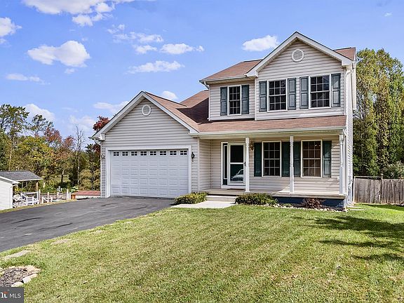 Move-in ready colonial with four bedrooms, three full and one-half baths, and a 2-car garage. Basement finishing was started but not completed. The basement has a walk-in-out level, and one full bath, and supplies present will remain. This lovely home needs some minor sweat equity to really shine, great bones, and a great floor plan for the price. On the main level is a family room, kitchen, dining room, laundry, composite deck and a 1/2 bath. There is also garage access from this level. Upstairs are four bedrooms and two full baths. The primary bedroom has a private bath. Large yard in the town of Rising Sun with public water & sewer. The roof replaced in 2004