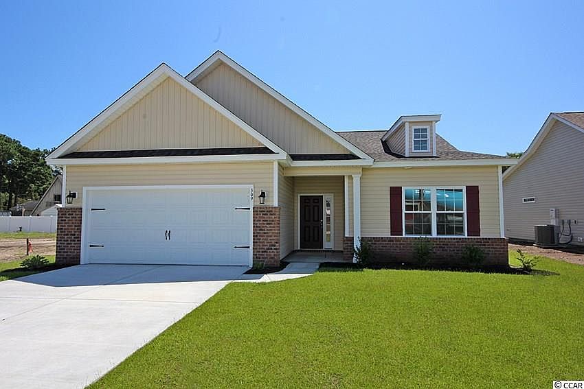 Beautiful Edisto floor plan is complete and ready for you to move into at the new Ocean Palms community. This terrific open floor plan home has upgraded waterproof laminate flooring under the soaring vaulted ceiling in the family room, kitchen and dining area, and comfortable carpet in the bedrooms. Stainless appliances, granite counters, staggered-height birch cabinetry, a huge walk-in pantry and a breakfast bar give the kitchen the wow factor you're looking for, and the bay windows in the dining area flood the room with light. Sliders at the back wall of the family room lead to a large patio. The spacious master retreat features a tray ceiling, oversized walk-in shower, long vanity with granite counter, plenty of storage in the cabinetry and linen closet, plus a huge walk-in closet. Two additional bedrooms and a bath are tucked off on their own private hallway, for privacy. All of the homes in Ocean Palms come standard with the luxury of natural gas (tankless water heater, gas heat, and gas range). The garage is completely trimmed and painted, with floored attic space accessed by drop-down stairs. Ocean Palms is conveniently located near shopping, restaurants, schools and world class medical offices and hospitals, and is only a short golf cart ride to Surfside Beach's gorgeous beach and the Atlantic Ocean. Other floor plans and inventory homes may be available, and CUSTOMIZATION OF PLANS IS POSSIBLE!!! Community Pool and Cabana Coming Soon! Photos are of the completed home.