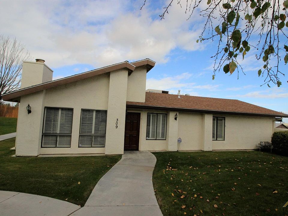 Very Nice incredibly clean, Gated Complex, Three bedrooms, Plantation shutters throughout, fresh paint and carpet. Cathedral ceilings, fireplace, large great room. Includes refrigerator, new washer and dryer. 2 car garage, large covered patio with yard. Third bedroom can also serve as an office or den.