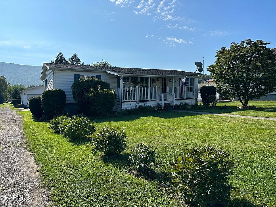 Easy living and maintenance in this one story home with two porches and a large two car garage. Well landscaped level lot.