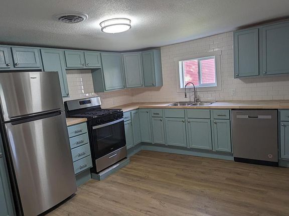 Cozy 3-bedroom 1-bathroom home in a quiet neighborhood on the edge of town. Completely remodeled in 2023 with new roof, new forced air furnace, new central AC, new water heater, new stainless-steel appliances, and new waterproof flooring throughout. Large 26x30 insulated garage with a new roof