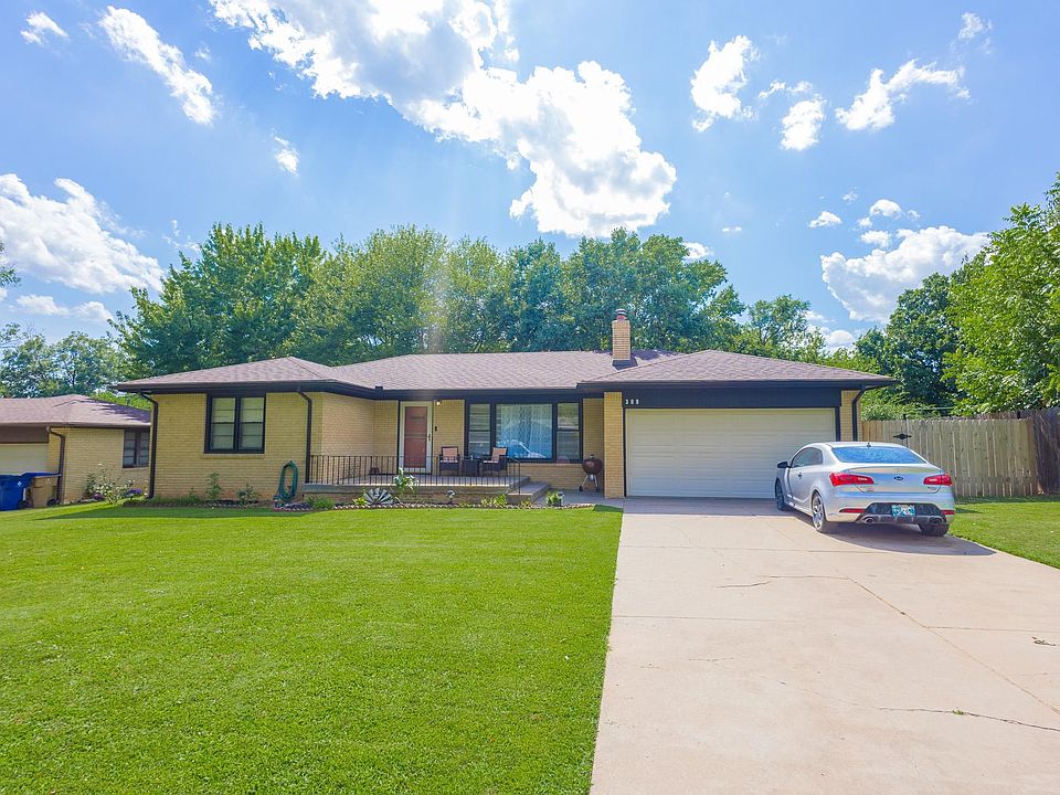 Welcome home to Clearwater, Kansas! This all brick home is ready for you to move in! The home showcases the homes original, beautiful hardwood floors throughout! The home has a formal dining area as well as space in the kitchen for another smaller table with bench seating! And off the garage is a large laundry room/mudroom/storage room! This feature is hard to find in homes this size!! At the sink you can look out to the spacious backyard that is fully fenced! The front room is big enough for a large sectional with plenty of space to move around and features a fireplace! 2 bedrooms and a spacious, oversized bathroom finish out this adorable home.