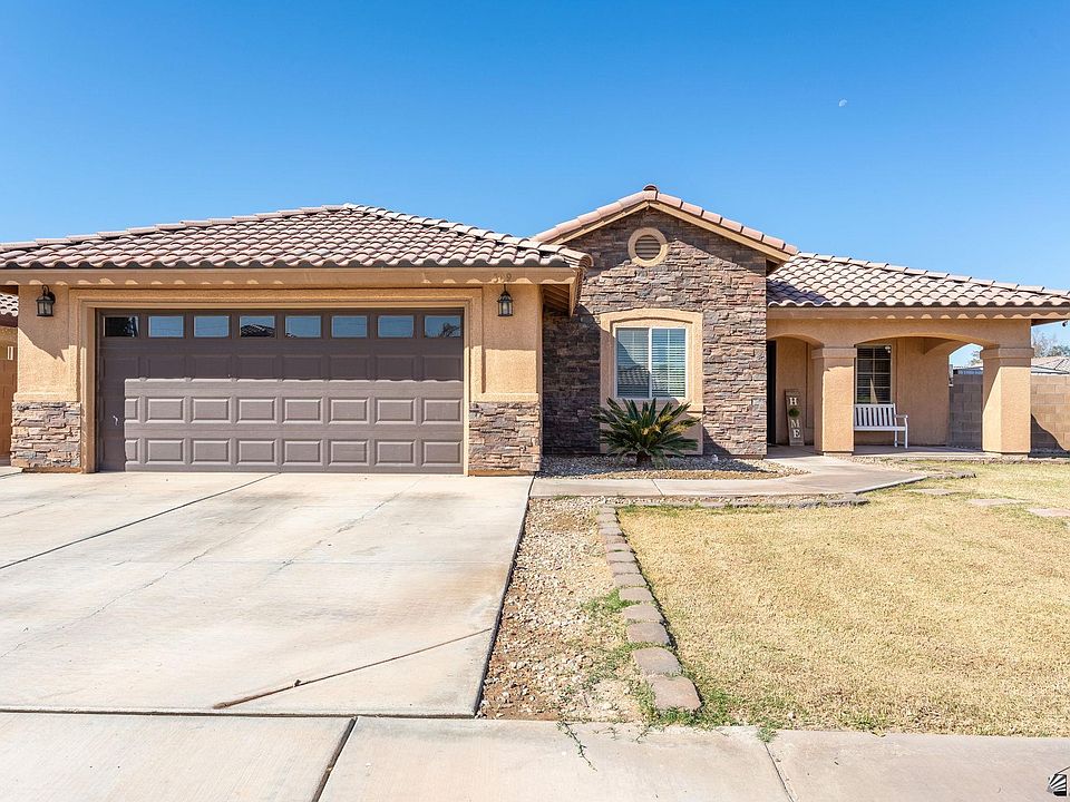 Welcome to this one-of-a-kind corner lot pool home that beautifully blends comfort and style! This beautiful property features four spacious bedrooms and two bathrooms, both equipped with stylish LED mirrors. Solar panels on the roof enhance energy efficiency. French doors lead to the backyard oasis, where you'll find a sparkling heated pool complete with a fun slide, making it a perfect spot for summer gatherings. The outdoor area offers plenty of room for lounging and barbecuing, surrounded by lush green landscaping. Don't miss the chance to own this exceptional gem!