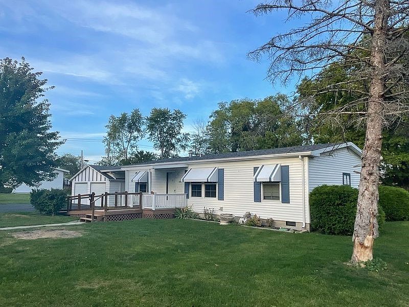 Well Maintained 3 Bedroom 2 bath Manufactured RANCH sitting right on the corner. 2 spacious lots. Fruit trees. Front porch deck. Attached garage. Blacktop driveway. Breezeway. Open floor plan. Handicap Ramp. All appliances will stay. Great price. Hurry!