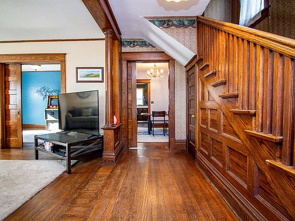 Great home with so much living space. This home has tons of origianl woodwork including floors, stairways and trim. Huge open staircase leading to an upstairs that seems like it goes on forever. The second floor has one full bath with four bedrooms and a laundry shoot for your convenience. It also has a bonus space that leads to the fully finished attic. The finished attic has been turned into an amazing Colts theater room. This home also has dual H-vac systems for your comfort.