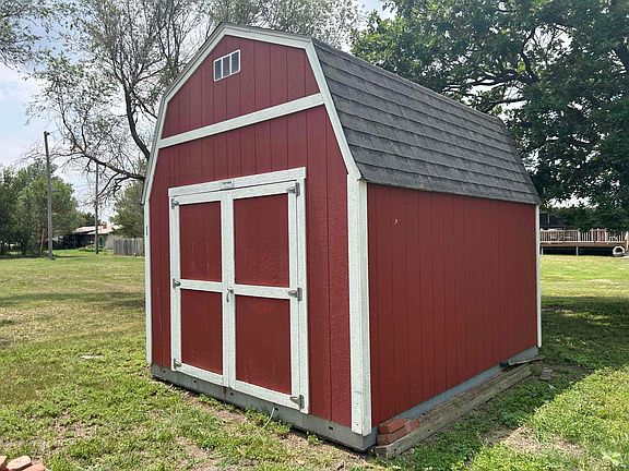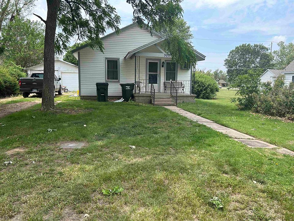 Adorable 2 bedroom home with 2 car garage in Burrton. Newer siding & windows, updated plumbing & electrical, new vanity and toilet. This home is ready for your finishing touches. Storage shed in back yard transfers to buyer. Appliances transfer to buyer but not warranted.