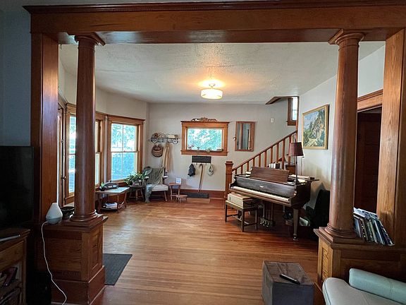 If your eye is attracted to the old two story homes complete with old wood floors and woodwork than you will want to see this place. This home has tons of space and great potential. If you can get past the great front porch and porch swing you will find a main level that has a large family room, dining room and kitchen. Venture upstairs and you will find 4 bedrooms and a bathroom. The bonus to this house, the attic has been finished as a large bonus room. Laundry is in the basement along with more storage than a person could need. Head outside to find a large fenced in back yard with a large garden shed, complete with a loft for extra room as well as a one car garage. This home is priced to sell and located on a quiet street, close to highway access as well as the business district!