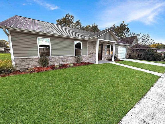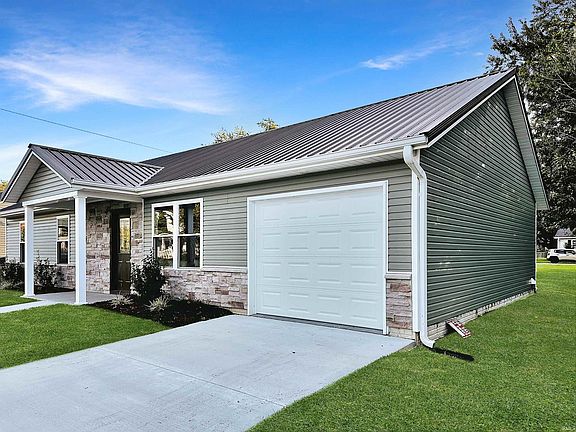 Stunning New Construction One-Level Home in a Prime Location! Welcome to your dream home! This beautifully crafted one-level residence offers 1,560 sq. ft. of thoughtfully designed living space. Step inside to discover a spacious main bedroom suite featuring a large walk-in closet, a luxurious walk-in shower, and custom cabinetry for added elegance. The home includes two additional well-sized bedrooms, both carpeted and equipped with generous closets. The open-concept living area, with cathedral ceilings in the living room and kitchen, creates a bright and airy atmosphere, perfect for entertaining or relaxing. The heart of the home is the modern kitchen, showcasing gorgeous custom cabinetry, granite countertops, and a contrasting island. You'll also enjoy brand-new kitchen appliances, making meal prep a breeze. Conveniently located off the kitchen, the attached 1-car garage offers easy access. A second full bathroom doubles as a laundry area, complete with a new washer and dryer for your convenience. Thoughtfully designed for accessibility, the home features a low step into the garage and 36" doors throughout. Neutral colors provide a calming ambiance, while extra insulation keeps the home quiet and energy-efficient. The 4 ft crawlspace and attic are insulated with spray foam and batt insulation for an R15 rating, ensuring warm floors in winter and low utility bills year-round. Step outside to a concrete patio, perfect for BBQs and outdoor gatherings, all enhanced by beautiful landscaping that boosts the curb appeal of this low-maintenance vinyl and stone home. Conveniently located near shops and restaurants, with high-speed fiber internet available, this home is just moments away from the I-69 exit, Bloomington, Washington, and NSWC Crane and Tech Park. Don’t miss your chance to be the first owner of this exceptional property and experience small-town living at its finest!