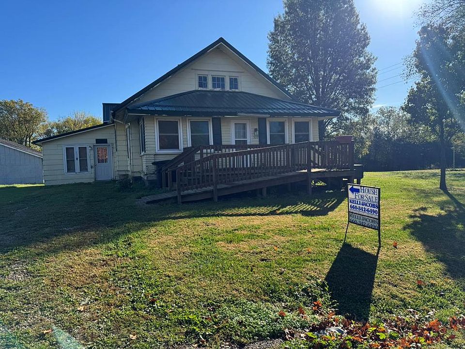 This charming home offering some unique hardwood floors and built ins is ready for you! Wonderful enclosed front porch, this 3-bedroom, 1 bath home is very spacious offering a laundry room and storage room as well. Large attic space with easy access and a partial basement/ partial crawl space for more storage. All vinyl windows and a metal roof, this home offers some updates as well. Property also offers a ramp on the front of the home and an outbuilding. DON'T DELAY, call the listing agent today, Kelli Jacobs at 660.342.6490 for more information and to set up your own personal showing!