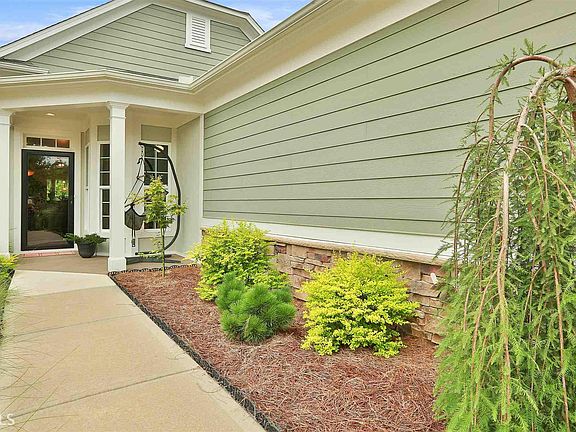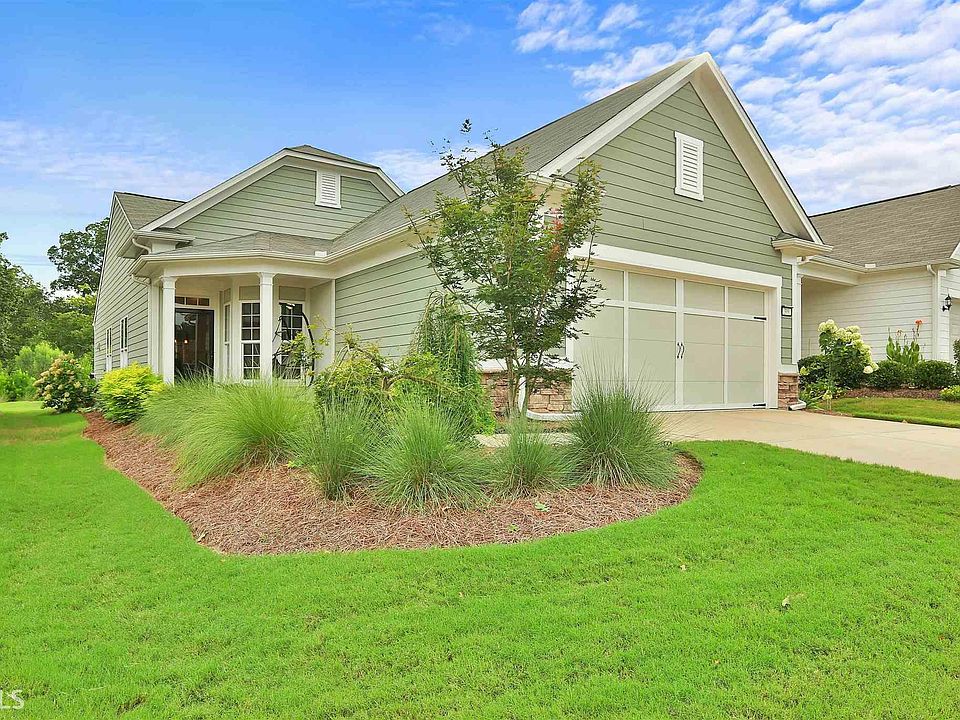 A master gardener lives here and it shows!This Pine Springs plan is decked out with many extras. It sits on a premium level lot with green space as a back drop. This 2 bedroom/2 bath plan also offers a room for library or office that has a niche that could become a closet for and extra bedroom! Hardwood floors in living areas and kitchen. Tile floors in baths. Kitchen offers a breakfast bar, granite, tile backsplash, lots of cabinets,SS appliances and eat-in area. A beautiful screen porch w/stone floor that is a great place to sit and relax. There is an extra patio also a fenced yard.There is a large master with lots of light from the large windows. The master bath offers double sink vanity, tile floors and large shower. Huge decked attic space above garage!