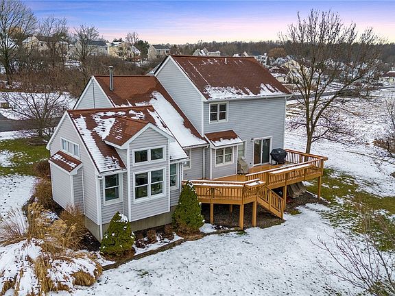 Nestled in the charming South Hill neighborhood of Deer Run, this home offers a delightful blend of comfort and convenience. This open floor plan boasts vaulted ceilings with comfortable living spaces that flow to an outdoor deck for entertaining. The first floor is complete with a large living room, dining room, powder room, and kitchen, with the addition of a spacious entertainment room. The second floor has a large primary en-suite with a walk-in closet and two additional bedrooms with a connected bathroom. The finished basement provides additional living space ideal for a large family room, office or workout room and also includes ample storage room space.  The two car attached garage includes an EV charging station and epoxy flooring. Situated close to Ithaca College and a short distance from downtown, it offers easy access to academic pursuits, shopping, and entertainment. As a bonus, the home has been impeccably maintained and the lot has privacy along with incredible views of Ithaca and Cornell! Offer Review date has been set for Monday, 2/19/24 at 3pm. Please allow 24 hours for review.
