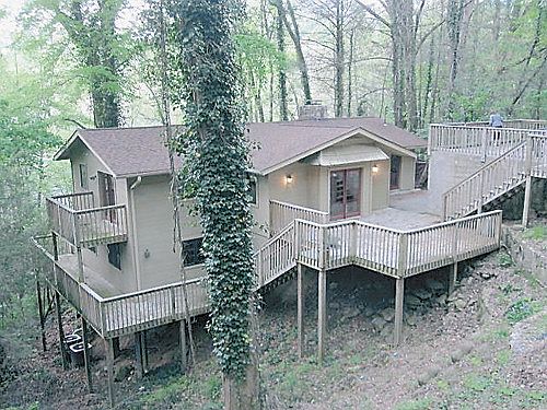 This is a WONDERFUL home...outside you feel like your in the national park, your only a hop and skip from Gatlinburg Parkway and the sounds of the rushing creek below you make you feel like your dreaming....inside tongue and groove wood thru out, lots of glass to take in the natural beauty- lots of decking to live outside, the inside was updated to make it modern and desirable and no sign of it's age..wood floors, cathedral ceilings lots of wood thru out...just a wonderful place to call home or put it on overnite rentals and with the location and the creek you'll do really well...never drive in Gatlinburg again just walk down to the parkway....just like living inside the national Park....I think it would make fantastic rental...creek sounds, surrounded by woods and no driving to town your already in town.....