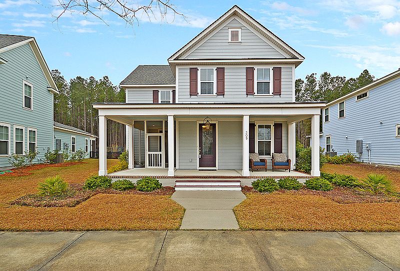 VACANT-SAFE AND EASY TO SHOW! STUNNING home in desirable Nexton has it all! This TURNKEY home is better than new and has numerous upgrades included that you do not get with new construction! The home boasts STUNNING CURB APPEAL with a beautiful covered full front porch, screen porch and gas lantern. Entering you are greeted with handsome hardwood floors and an abundance of natural light in the beautiful formal foyer. A large dining room/office/flex room with glass French doors is to the right. Continuing in is the GORGEOUS CHEF-INSPIRED GOURMET kitchen with gas stainless steel stove, granite countertops, HUGE island w/breakfast bar seating, tons of custom staggered cabinets, eat-in area, massive walk-in pantry and desk area.This kitchen is large enough to have multiple cooks in the kitchen at once while entertaining family and friends. The kitchen is OPEN to the generous sized family room w/fireplace and also, the light filled sunroom. Oak wood tread stairs lead to the second floor. The master bedroom suite w/massive walk-in closet is on the second floor with a SPA-LIKE master bathroom featuring a LUXURIOUS 5 FOOT SPA SHOWER W/SEMI-FRAMELESS GLASS door, and granite counter dual sink vanity. The master bath has plenty of space for two people to get ready at the same time! There are two additional large bedrooms that share a large full bath with granite dual sink vanity. Finishing off the second floor is the laundry room. The backyard has a grilling patio area and a nicely sized 2 car detached finished (drywalled and painted) garage. Nexton in Summerville is a wonderfully landscaped community with a play park, community pool, and walking trails! The neighborhood is close to local shopping and grocery stores and is a short drive to downtown Charleston with 5-star restaurants, world class shopping and iconic history as well as a short drive to the beaches, the airport, Boeing, Volvo, and Daniel Island. Come take a look because you will not find another home that offers as much as this one!