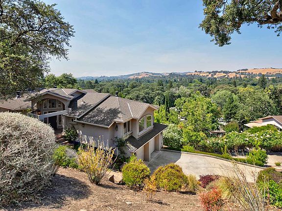 TOTAL PRICE REDUCTION OF $274,000! Sellers are relocating.Views, Views, Views!!! Perched on a hill, with an ample side yard this custom remodeled five bedroom, three bathroom home boasts dramatic views of panoramic hilltops. Bright by day and sparkling by night, combining peace and privacy. Elegant by design and layout, the living room offers soaring ceilings and gas fireplace. Chef's kitchen with granite counter tops and custom tile island with breakfast bar and updated cabinetry. Walk-in pantry and stainless steel appliances. Casual dining area off the kitchen features stunning views. Master suite has a spacious walk-in closet, luxurious bath, dual vanities, jetted soaking tub and a large stall shower. Three spacious bedrooms with an optional office create the perfect functional family home. As an added bonus the private yard with grassy area and lush landscaping is a nature lovers paradise!