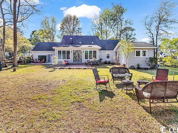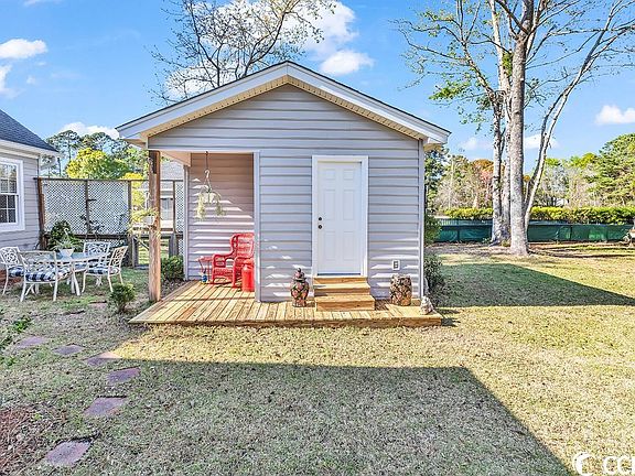 Location Location you get it!! Simply beautiful, fenced in, rectangular lot... on a tidal lake AND hardwoods in the yard....Bring your Pawleys Island Hammock. This three bedroom two and a half bath home is the ONE! A large driveway leads to a side-load two car garage. Covered front porch enters into a lovely foyer. Primary bedroom and laundry room are on the first level. Separate kitchen for a little privacy with an open breakfast area to the Great Room. Owner's added on a beautiful tiled Carolina Room! There is a small building in the yard that can convert into a playhouse, SHE shed or leave a shed! Even has a little porch! Great neighborhood to call home right in the middle of Pawleys Island!