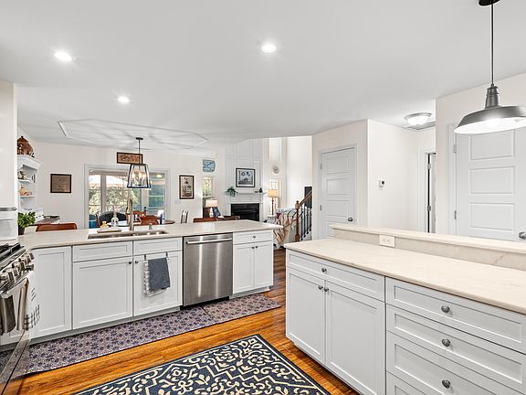 Convenient, Stylish Living ~ 3 bedroom + office + 2.5 baths in coveted Elfin's Pond quaint community ~ Custom lighting and all new luxury vinyl plank flooring run throughout both the upstairs and downstairs. This spacious home is anchored by an updated kitchen, featuring quartz counters, abundant counter prep space, a pantry, floating shelves, and a shiplap accent wall. The sunroom, fenced lot, and patio each create inviting spaces to gather, entertain and relax. The first floor downstairs office provides extra privacy, away from the main living spaces, and is complimented by a glass-paned pocket pair and a wall of built-in bookshelves. and gas fireplace in the vaulted living room. Features of the primary suite include a vaulted ceiling, a large walk-in closet, and a stunning custom walk-in shower. Community amenities include a pool, park/pond, walking trail, and street-lined sidewalks with streetlighting. Just a half mile to Occoneechee Mountain State Park trails, one mile to Riverwalk and Gold Park, and mere minutes to historic downtown Hillsborough, farmers' market, public/private schools, Durham Tech OC campus, Hillsborough UNC Hospital, and Durham and Duke University. Quick, easy access to I-85/40, Hwy 86 and Old 86, Hwy 70, and local shops and restaurants.