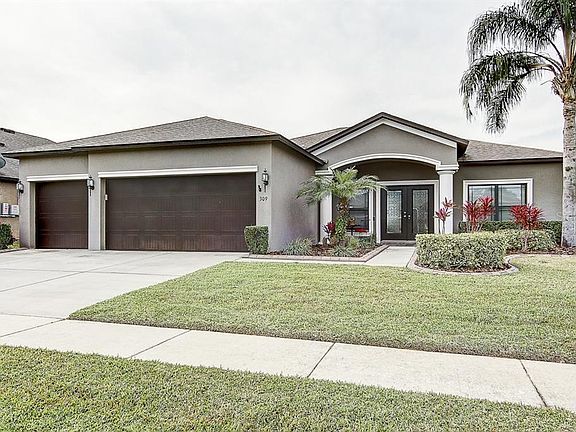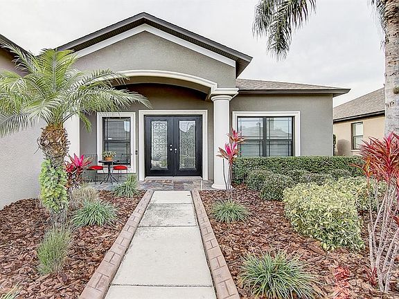 Come step into this beautiful, waterfront, pool home today in the highly desirable Harbour Isles community! Perfectly landscaped walkway leads you to the double front doors and onto a cozy front porch sitting area. From there you you see the open layout and perfectly set up dining and living area. Open lighting from the large sliding doors allows natural light in to accent all the upgrades in this home. Dark wood cupboards, gorgeous stone counter tops and back splash just completes this kitchen. Newer stainless steel appliances with dishwasher, double stove, microwave, wine bar and refrigerator. Plenty of cupboard space as well. Large office and bedrooms gives you plenty of space to grow. Master Bedroom leads into the master bath with large vanity area, double sinks, stand up shower and garden bath. Step outside to your covered back porch area with paved and screened in pool overlooking the pond. You don't want to miss this one. Schedule your showing today.