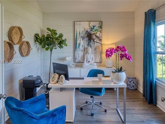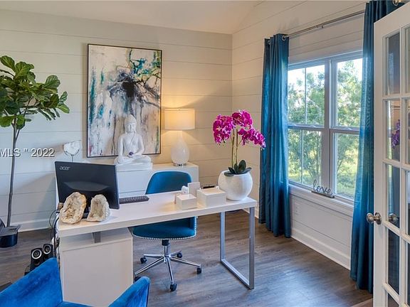 Lawton Station Neighborhood - Nearly new home built in 2019 shows like a model and is move in ready! Upon entering the front door, you will notice French doors leading to the office, then you are attracted to the light streaming into the open concept home. This retreat boasts beautiful (and durable) LVP flooring, 9' ceilings, crown molding, stainless steel appliances, 42 upper cabinets, granite countertops & pantry. Enjoy a serene, lazy afternoon on your back screened in porch surrounded by a beautiful privacy fence. This home is minutes from historic downtown Bluffton, Hilton Head Beaches, Savannah & Beaufort. Low POA, Community Pool. 2022-05-09