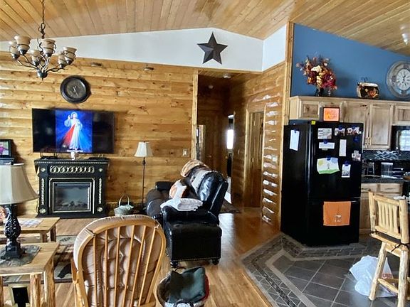 Check out this beautiful lake property! Located just 7 miles out of Devils Lake! Upon entering the upstairs living quarters, you will find an open concept kitchen and living space along with vaulted ceilings. In the kitchen you'll find granite counter tops, black appliances, and ample amount of cabinet space. The main floor bathroom is spacious with a beautiful custom mirror. The large bedrooms feature large closets. Throughout the house you'll find beautiful custom tile and woodwork. The semi-finished 3 stall garage has heated floors, floor drain, bathroom, and laundry room. The yard is large with mature trees and 3 apple trees. This property also comes with its own private dock spot for quick access to the lake! Southeast exposure with plenty of natural light, very quiet and peaceful area! Agent is related to seller.