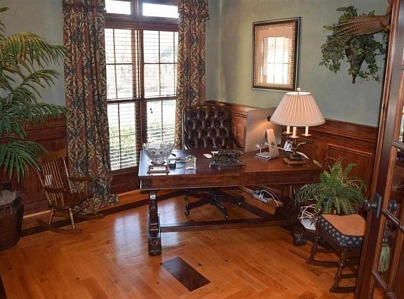 Stunning custom built home with all the bells and whistles. The gorgeous view from this house is breathtaking as it sits in a privately located cul de sac lot. The grand entrance in the foyer leads you to the open floor plan and beautifully appointed Kitchen with spacious countertops, and high-end appliances. Beautiful hardwood floors, plantation shutters, and deluxe crown molding throughout. Owner's suite is located on the main level including two extra bedrooms and full bathroom with double vanity sink. Upstairs leads to a spacious bedroom with a walk in closet and large bathroom. Walk out storage access is upstairs beyond the walk in closet. Gas log fireplace in the spacious family room den area is a beautiful focal point for relaxing on winter nights. The full daylight basement also o