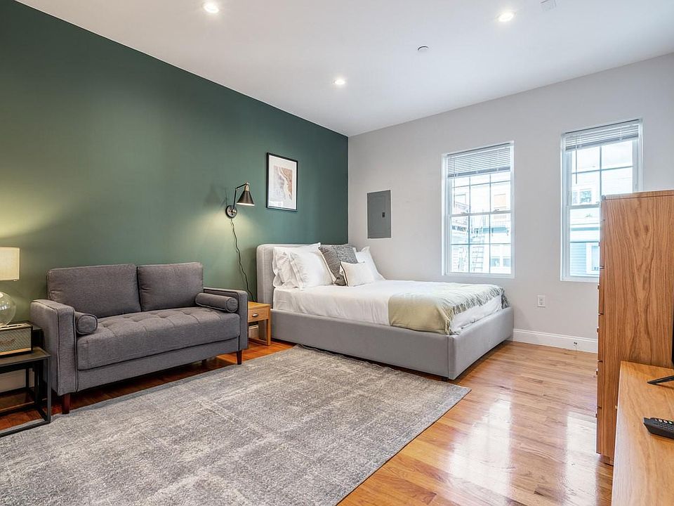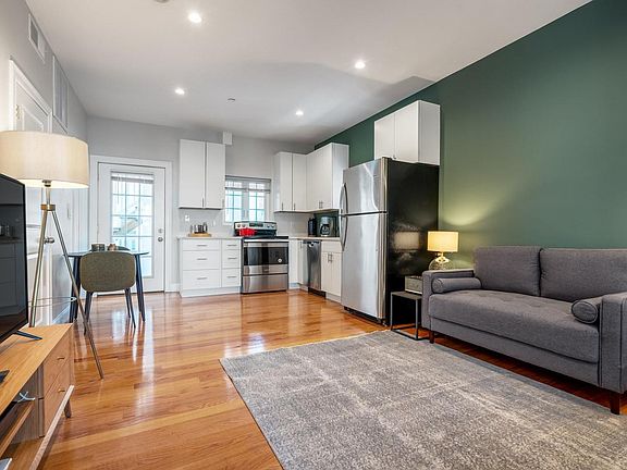 This unit looks exactly like it does in the photos. Located in Jeffries Point of East Boston. Newly renovated. Features BRAND NEW oak stained hardwood floors throughout. A high end kitchen with quartz counter-tops, recessed led lighting and elegant modern shaker cabinets. Back Deck. In-unit washer/dryer, Central Heat/AC. Blue line- Maverick T stop. Option to rent furnished or unfurnished including kitchen appliances, glassware etc. Anything you don't need in the unit we can have removed. Pets negotiable.