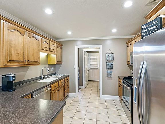 It's a MUST SEE!! Gorgeous 3 bedroom home could easily be a 4 bedroom with the rec room upstairs. Nice eat-in kitchen with all stainless appliances including refrigerator. Split bedroom floor plan with living room and dining room. Great backyard for summer fun with covered patio, above ground pool, and privacy fenced! To contact the listing agent directly or to schedule a private tour, text Haltom to 59559