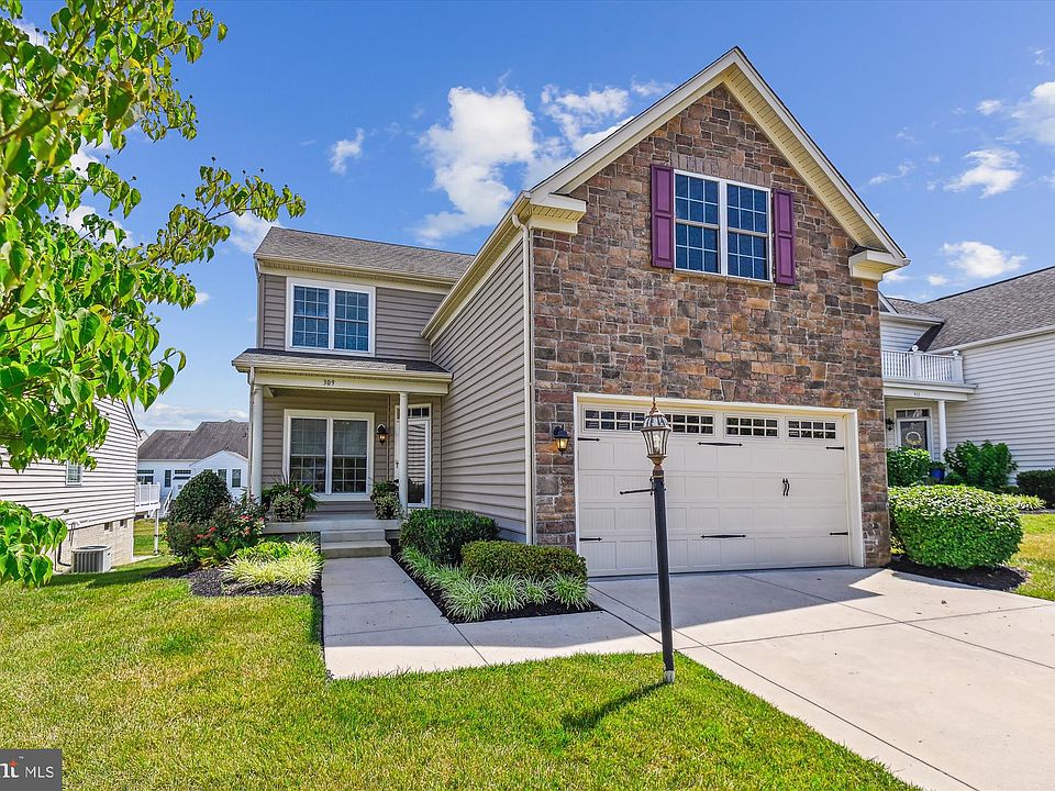 Back on the market through no fault of sellers, buyer did not perform. Motivated sellers have reduced the price of 309 Tecumseh Way, located in the highly sought-after gated community of Bulle Rock. This 11 year young single family home boasts a striking partial stone exterior and welcoming covered front porch. The main level features a primary bedroom and bath suite, hardwood flooring, a library, laundry room with a utility sink and a very open concept in the kitchen, dining and great room. An oversized island, stainless steel appliances including a double oven, pantry and granite counters are focal points of the kitchen. The great room features a gas fireplace, windows on all sides and a slider leading to the large composite deck. Enjoy the deck under the retractable awning. A natural gas line is installed on the deck for grilling. The main level primary suite and bath feature a double vanity sink, walk-in closet and shower with bench seating. The upper level has an additional 3 bedrooms and 2 baths. One bedroom has an ensuite bath perfect for guests or multi-generational living. Other notable highlights of this meticulously maintained home are the main level powder room, 2 car garage and a 1 year home warranty. The lower level has a full bath rough-in and is ready for conversion into additional living space, extra bedroom or storage area. New washer (7/24) Your HOA fees include lawn care, snow removal to your porch, trash pick up and all of the amenities of the Residents' Club (fitness center, indoor-outdoor pools, billiard room, library, tennis/pickleball court, bocce ball, numerous clubs and Resident meet-up activities). Resident discounted golf membership available. Close proximity to downtown Havre de Grace to enjoy shopping, dining, arts and entertainment. Take in the riverfront views along the Promenade, Tydings Park and many other area attractions.