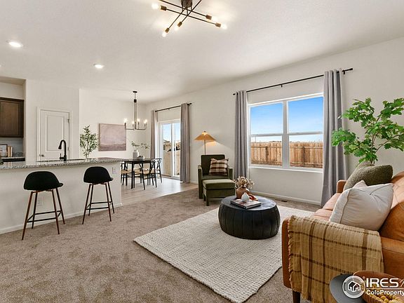 Fully remodeled, move-in-ready haven in Evans Place community! This single-story home has been touched top to bottom with upgrades and style, making it the epitome of comfort and convenience. Step inside and be welcomed by an open concept main area adorned with fresh paint, new carpets, and updated light fixtures throughout. Revel in the wonders of an integrated smart home system, featuring automated lighting and Alexa devices throughout. Command your home with voice-activated features for music, lighting, and even handy Alexa assistance. It's a modern marvel designed for your convenience and delight. Designer rods add a touch of sophistication, and high-quality sound dampening curtains offer both privacy and a quiet ambiance. The upgraded kitchen is a culinary masterpiece, boasting new backsplash and finishes that elevate your cooking experience. The master bedroom is your personal sanctuary, featuring an ensuite bathroom and a walk-in closet. Two additional bedrooms provide flexibility and space for family, guests, or your personal creative endeavors. Outside, the fenced backyard is a private oasis ready for your outdoor activities. Easy access to I-70 ensuring that you're seamlessly connected to all the amenities and adventures that Colorado has to offer.