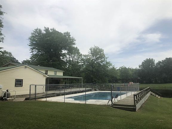 The possibilities are endless! Approximately 15 acres a brick home, 3/2 open floor plan with screened in back porch and deck overlooking a 2 acre pond. Two story bunk house with 57 bunks and restroom facilities opens up on a large covered deck surrounded by a 44' x 22' salt water pool. Game room building with sink also connects to deck. Volley ball pit between the pool and meeting hall could be turned into a great garden area. Meeting Hall has a covered deck right on the pond for relaxing. It has a full kitchen and 2 half baths, 1 bath is plumbed for a shower and could also be easily converted to another living space. Storage building. New AC unit installed in house Nov. 2020 and new Heat unit to be installed first week of March 2021.