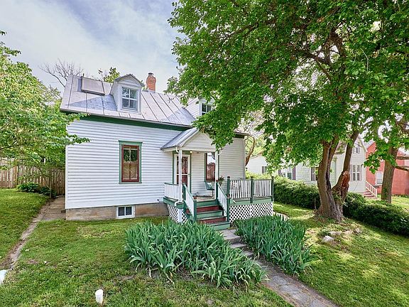 Welcome to this historic 2 bed, 2 bath cottage in the heart of Hermann! There are endless possibilities to showcase the original details including hardwood floors and millwork. There is a welcoming living room with wood stove and built in bookshelves, a private dinning or study, both with great natural light. The quaint kitchen can be kept as is or plenty of room to renovate to match your preference. The main floor also has laundry and a full bath. Upstairs is the nicely sized master with ample closet space, an additional bedroom and another full bathroom. The private backyard provides the perfect canvas for creating your own outdoor oasis with tons of perennials and bulbs already in the garden beds. Additionally, a carriage house with large apartment including full bath and economy kitchen presents an opportunity for extra space for guests or a private studio. The home is in R2 zoning which allows for guest homes with conditional use approval. Don’t miss this rare opportunity.