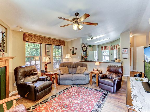 This gorgeous Payson Pines home shows true pride in ownership! This 2 bedroom, 2 bathroom manufactured home features 1,118 sq. ft., a 2 car carport, is in a cul-de-sac and has a workshop with power and a built in workbench. The living room has vaulted ceilings, laminate wood floors and a gas fireplace. You'll love the kitchen with great countertops, an open floor plan and a pantry. The master suite features a full bathroom, an oversized vanity, and a walk-in closet. At the end of the cul-de-sac is a great community park. The bonus screened in patio room is 260 sq. ft and you may just find it to be your favorite room!!! The backyard has gorgeous landscaping a covered patio and another patio, all perfect for enjoying all four seasons of Payson's beautiful weather.