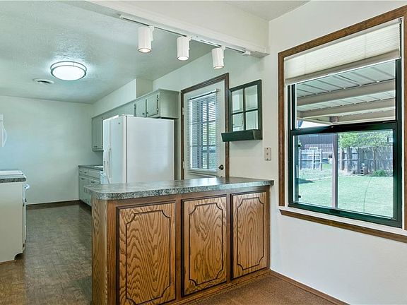 In a wonderful neighborhood with many original owners still loving their homes! This home is no exception! Front porch perfect for a rocking chair.... overlooks a pretty front yard with manicured flower beds and trees! Living room and dining are exceptional large! Many windows make this home airy and light! Kitchen has cabinets and counters galore! Two bathrooms feature original tile work that is in exceptional condition! Lots of storage. Two car garage plus two car carport. Backyard has covered patio, large storage building and beautiful landscaping! Storm shelter in garage. Systems on this home have been updated and have been kept in great condition.